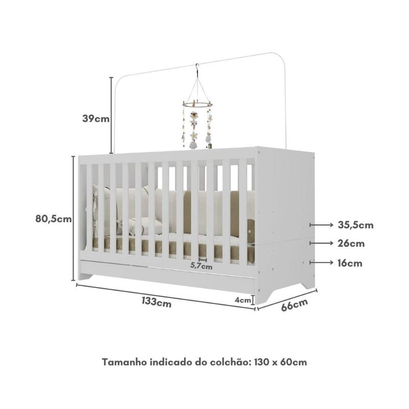 Berço 3 em 1 para Colchão 60x130cm Pipoca Multimóveis BB0527 REF: 768337_Sicredi
