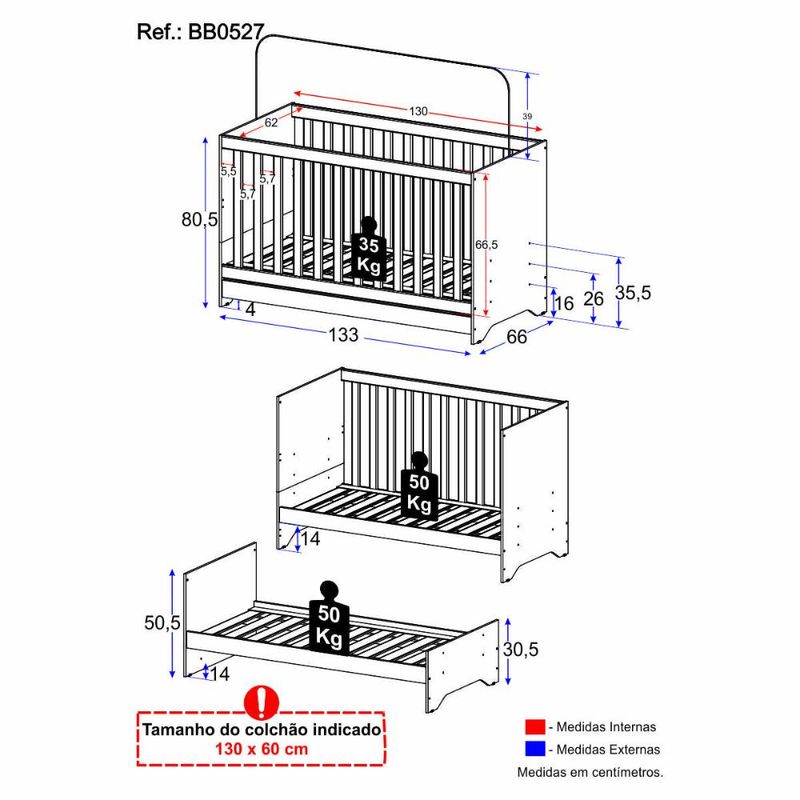 Casa e DecoraçãoMóveisBerço e ColchãoBerço 3 em 1 para Colchão 60x130cm Pipoca Multimóveis BB0527