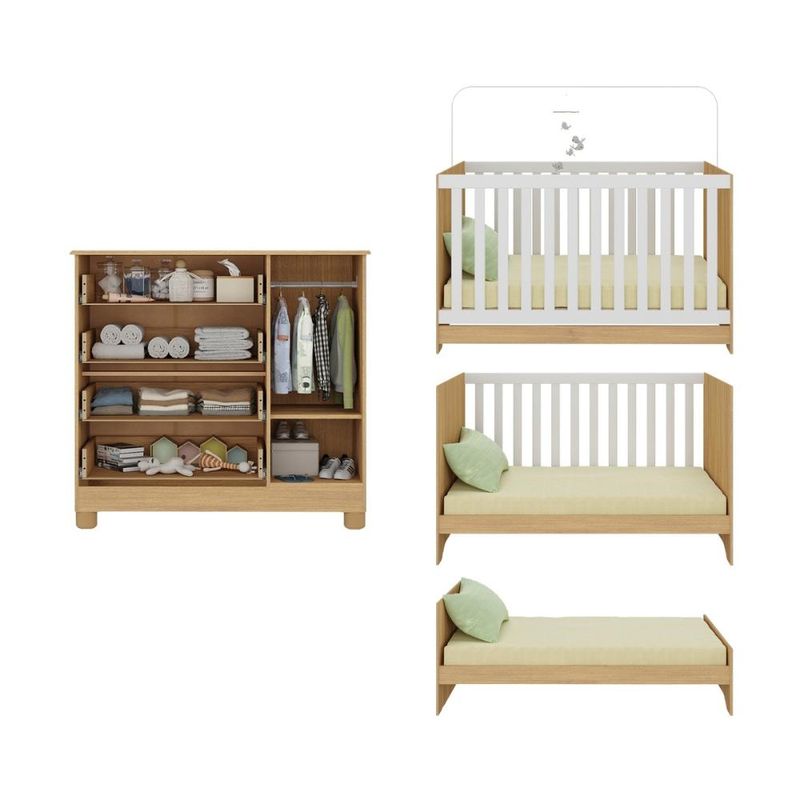 Casa e DecoraçãoMóveisBerço e ColchãoBerço Americano 3 em 1 com Cômoda 1 Porta 4 Gavetas Allegra Multimóveis MP4684