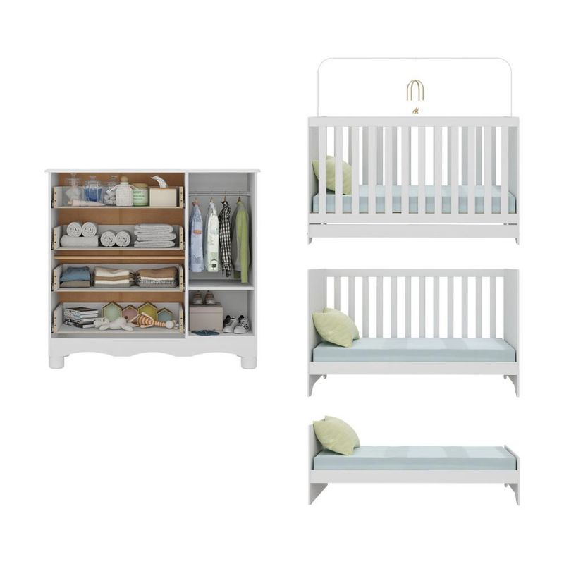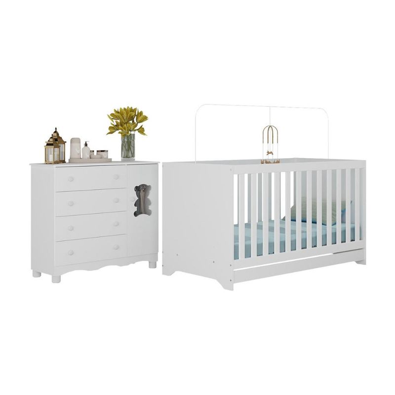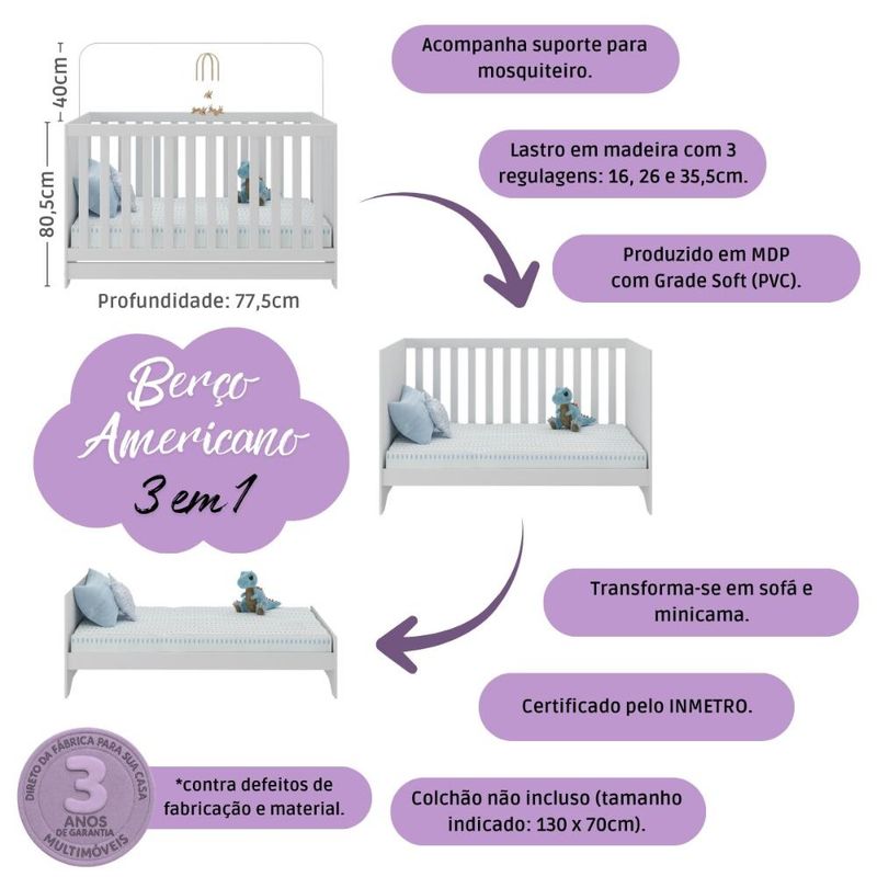 Berço Americano 3 em 1 com Cômoda 1 Porta 4 Gavetas Ternura Multimóveis MP4726 REF: 7899390844553