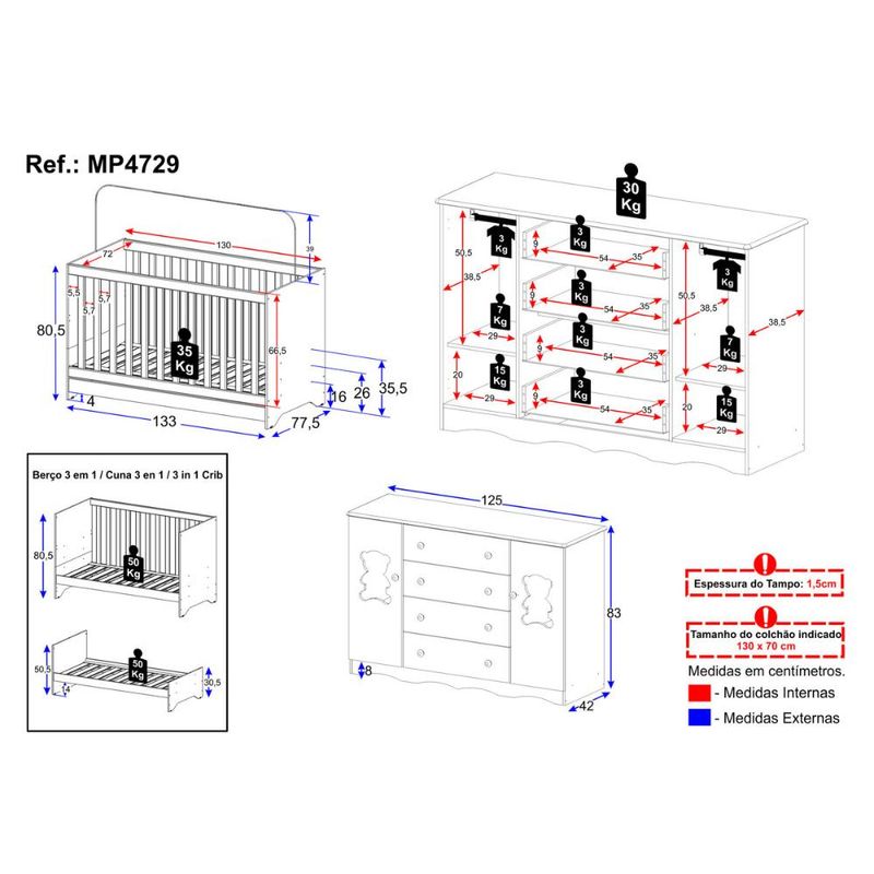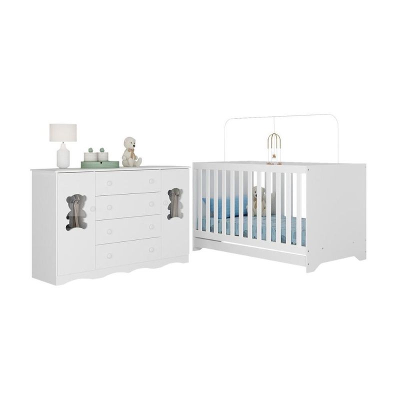 Casa e DecoraçãoMóveisBerço e ColchãoBerço Americano 3 em 1 com Cômoda 2 Portas 4 Gavetas Doçura Multimóveis MP4729