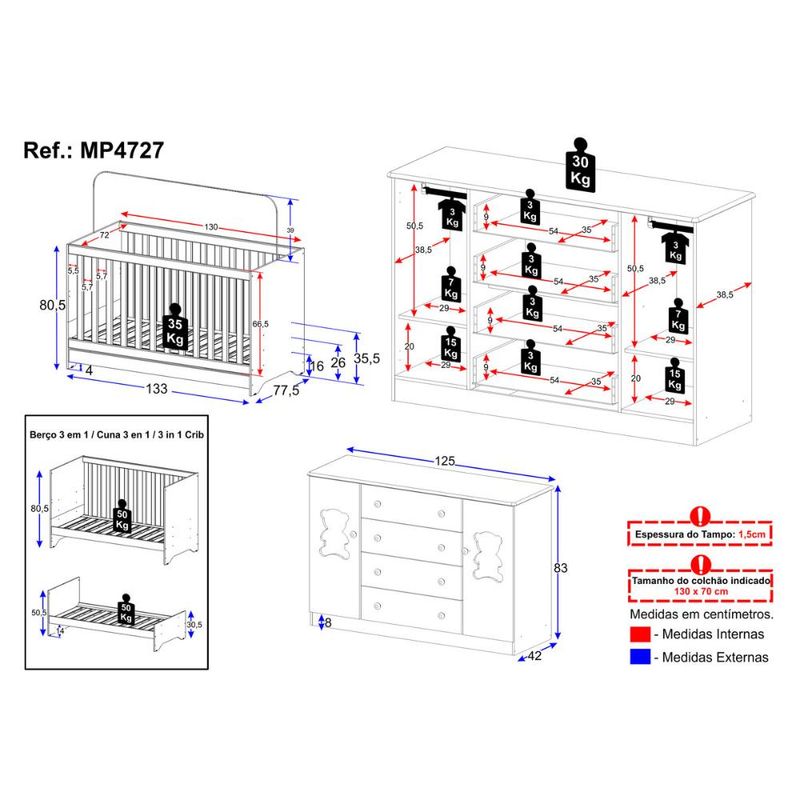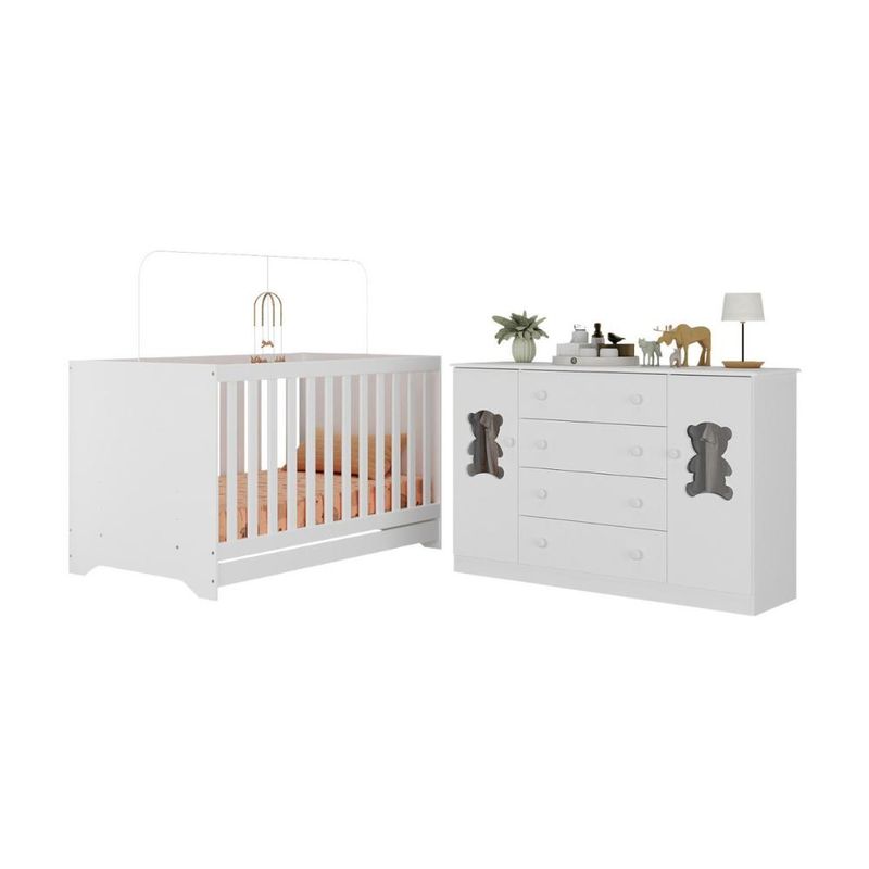 Casa e DecoraçãoMóveisBerço e ColchãoBerço Americano 3 em 1 com Cômoda 2 Portas 4 Gavetas Teddy Multimóveis MP4727