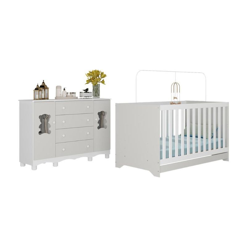 Casa e DecoraçãoMóveisBerço e ColchãoBerço Americano 3 em 1 com Cômoda 2 Portas 4 Gavetas Ternura Multimóveis MP4730