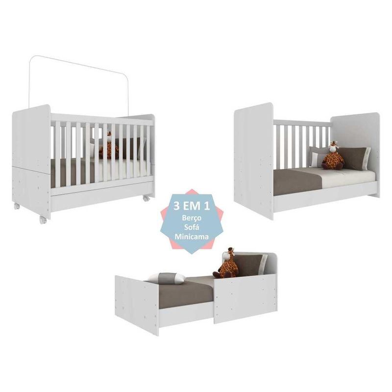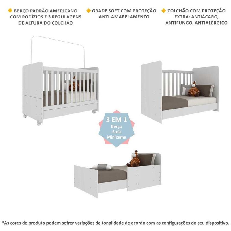 Berço Americano 3x1 com Colchão Incluso e Rodízios Pimpolho Multimóveis Branco REF: 569241_Sicredi