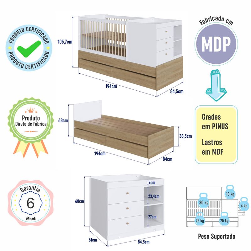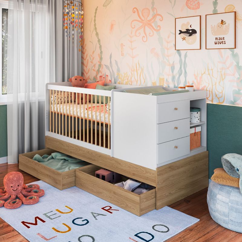 Berço Cama com Cômoda e Gavetões Aveiro e Branco Completa Móveis REF: 7899671469956