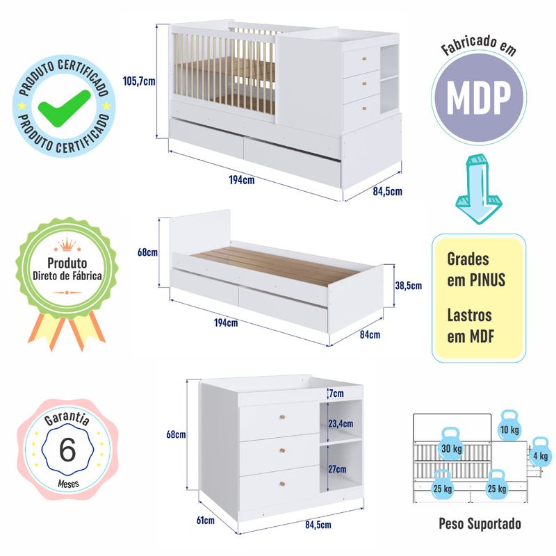 Casa e DecoraçãoMóveisBerço e ColchãoBerço Cama com Cômoda e Gavetões Branco Completa Móveis