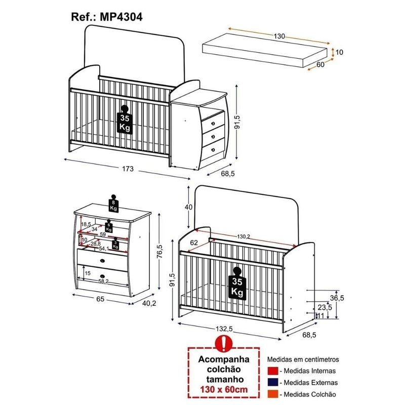 Casa e DecoraçãoMóveisBerço e ColchãoBerço Cômoda com Colchão Incluso Colinho de Mãe Multimóveis MP4304