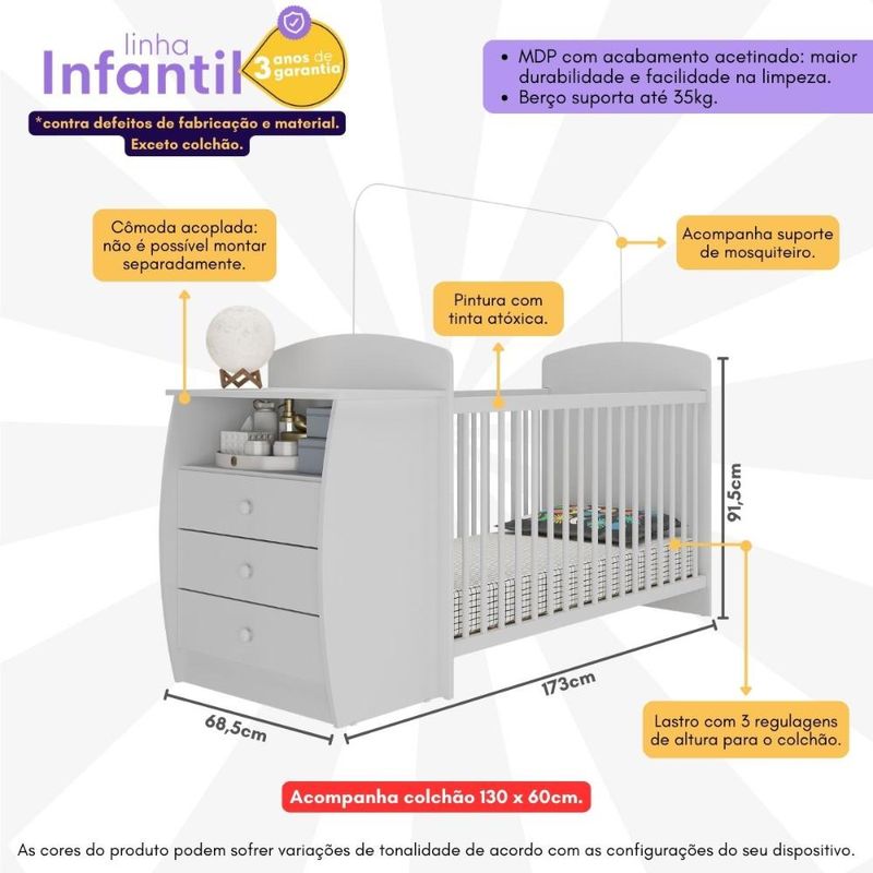 Berço Cômoda com Colchão Incluso Colinho de Mãe Multimóveis MP4304 REF: 765230_Sicredi