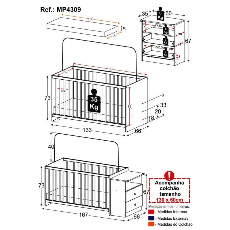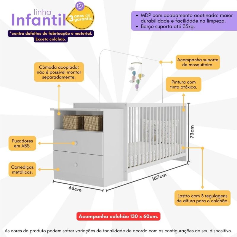 Berço Cômoda com Colchão Incluso Meu Bebê Multimóveis MP4309 REF: 641313_Sicredi
