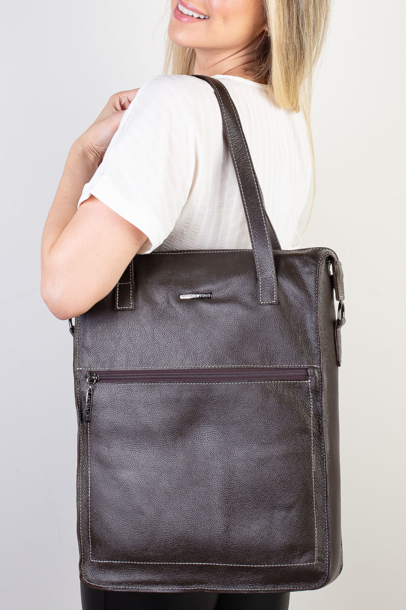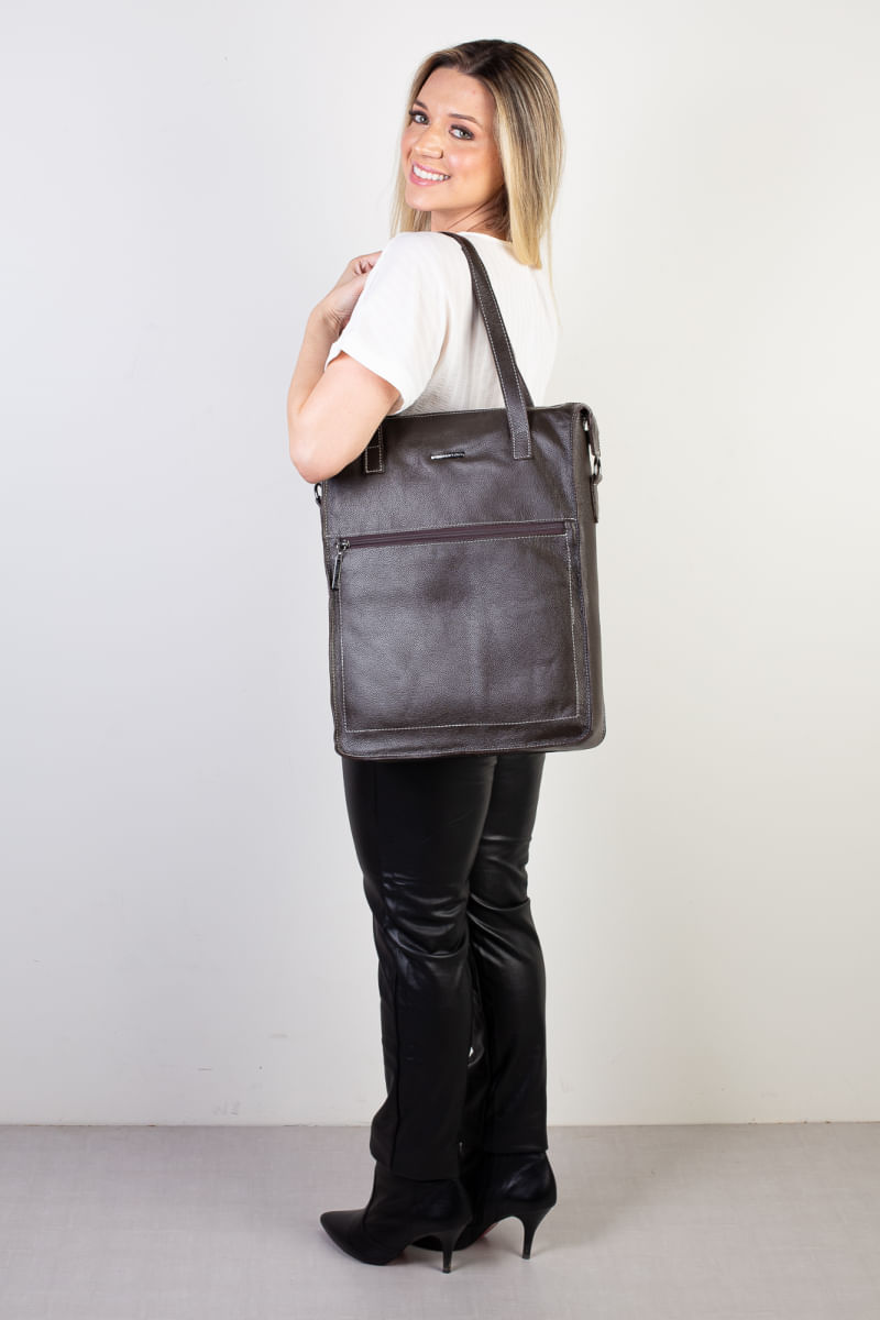 ModaAcessórios para ViagemBolsasBolsa para notebook em couro liso grafite Sandra