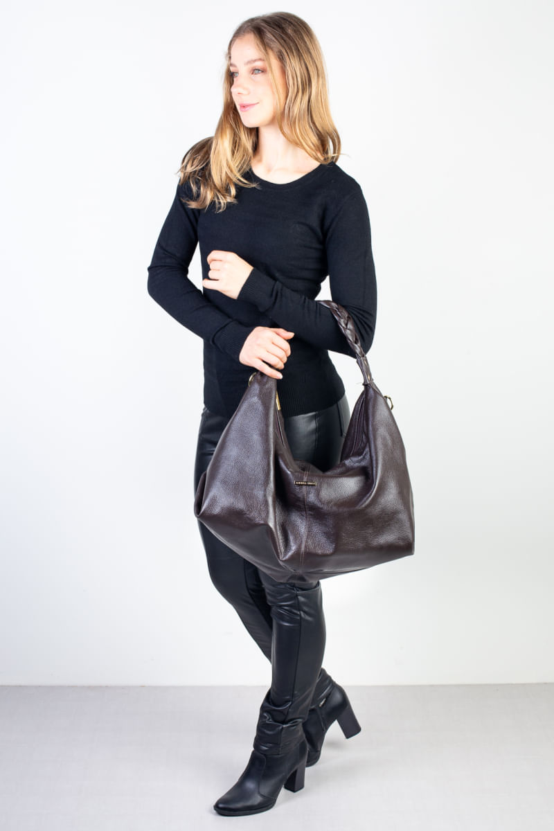 Bolsa saco grande de couro liso Cassia REF: 7908660137322