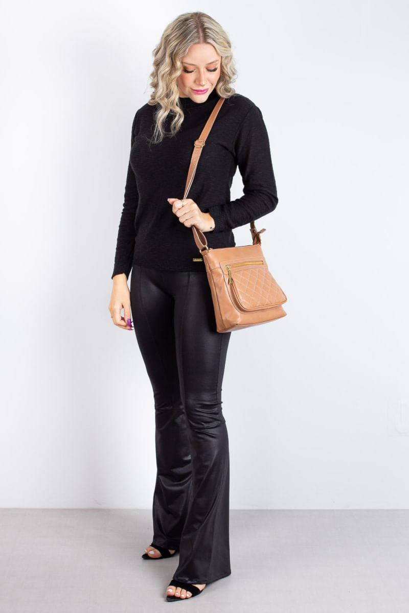 Bolsa transversal matelassê de couro liso Bia REF: 7899948602826