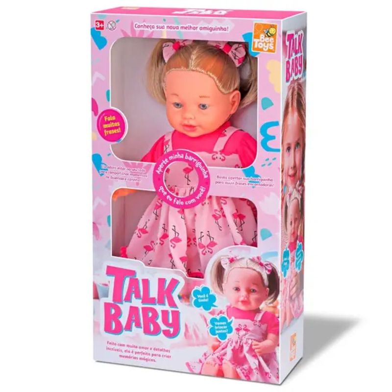 Brinquedos e JogosBonecas e AcessóriosBoneca Talk Baby 50 cm Loira Com Vestido Rosa - Bee Toys