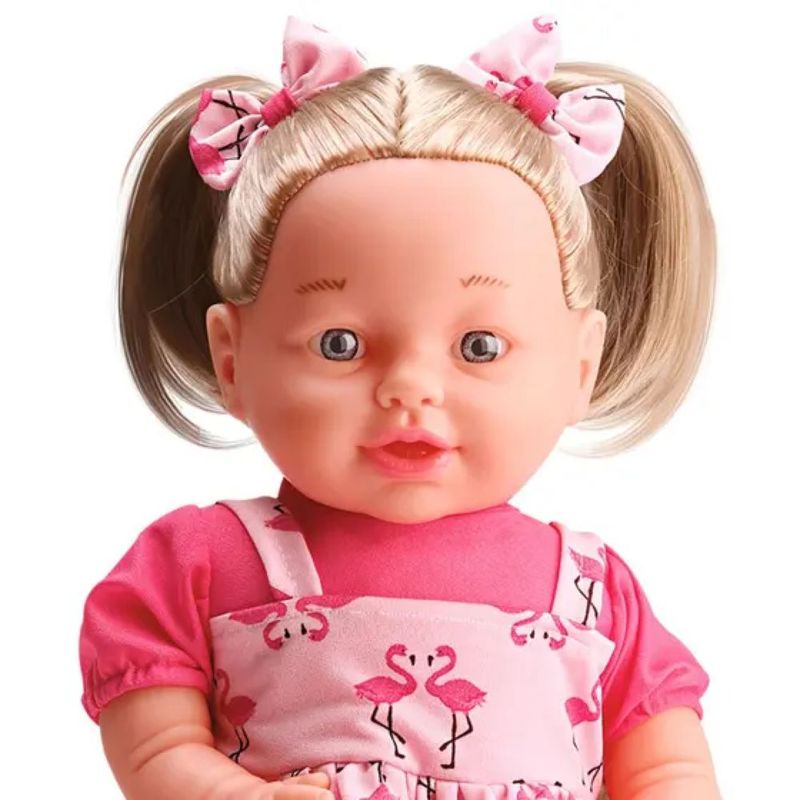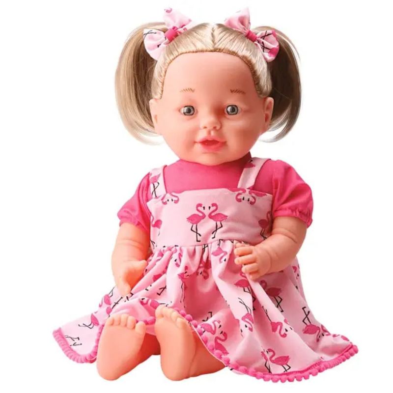Boneca Talk Baby 50 cm Loira Com Vestido Rosa - Bee Toys REF: 7908880700474