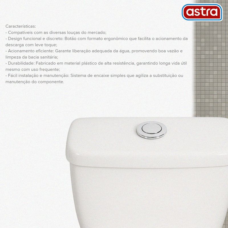 Botão Acionamento Tampa Caixa Acoplada Superior Cromado MB Astra REF: 7891222051214