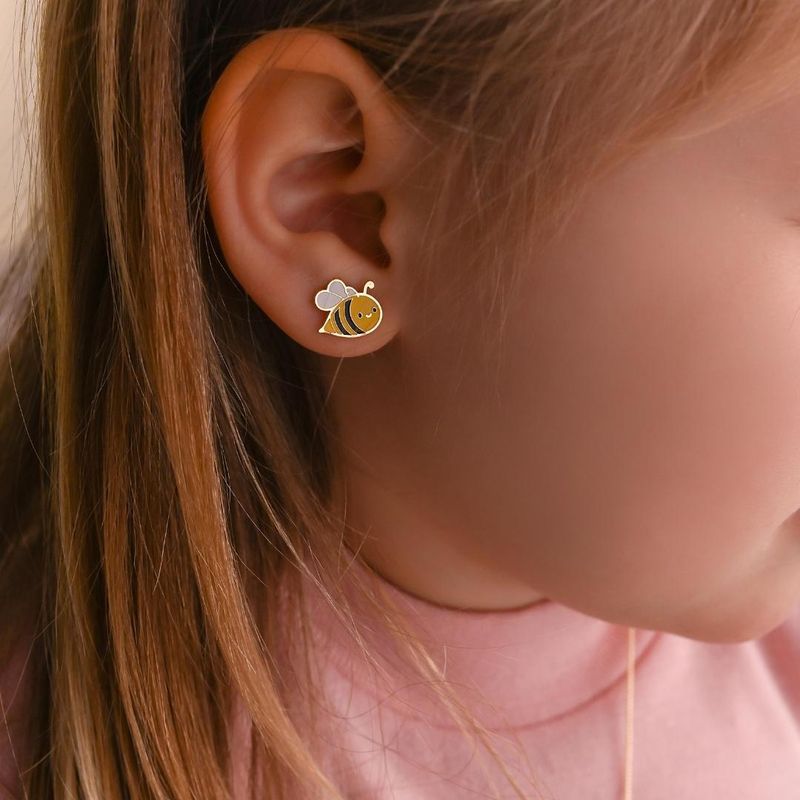 Brinco abelhinha colorido infantil folheado em ouro 18K REF: 721157_Sicredi