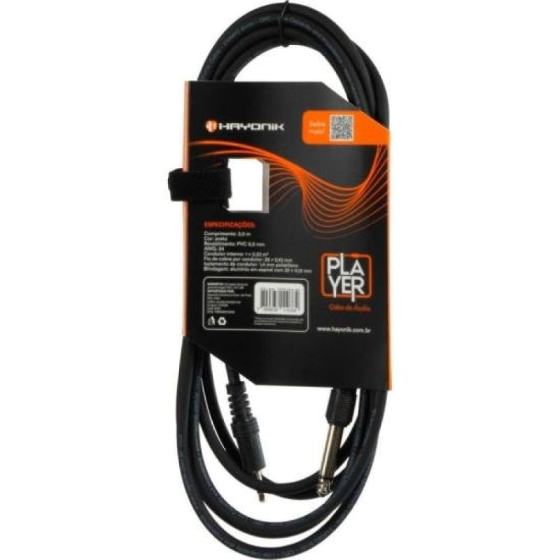 Cabo de Áudio Player P2 x P10 3m Preto Hayonik REF: 752458_Sicredi