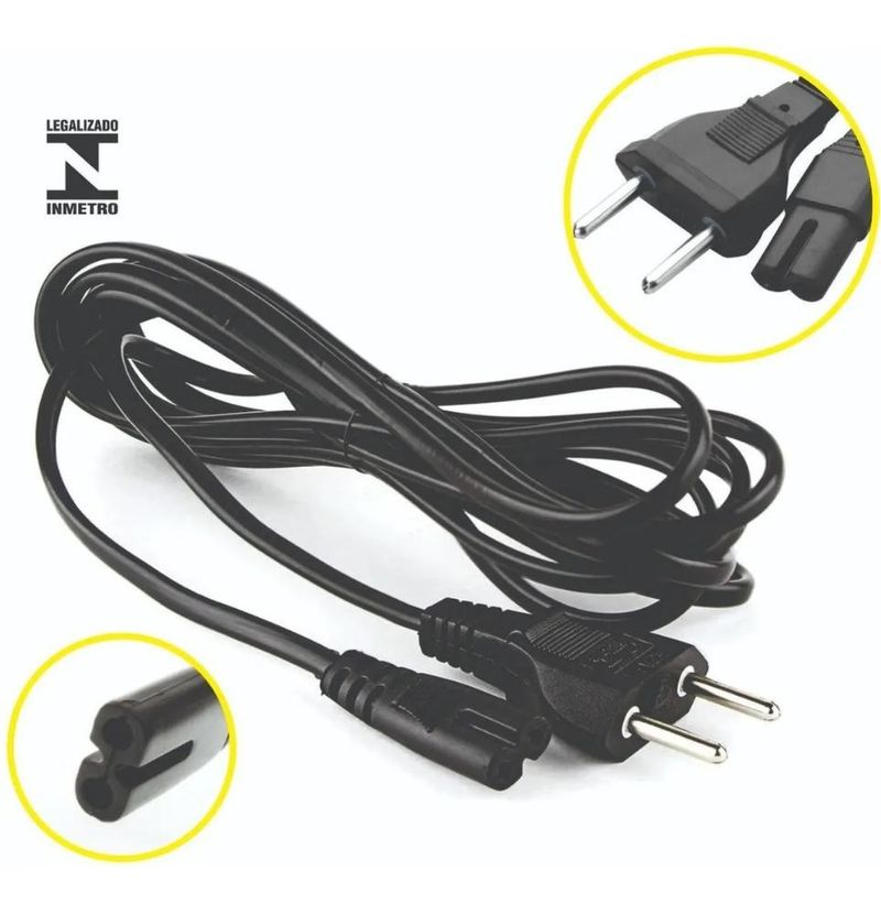 Eletrônicos e TecnologiaInformáticaAcessórios e PeriféricosCabo De Força Bipolar 8 p/ Fonte Notebook, Impressora e Radio 1.5 Mts