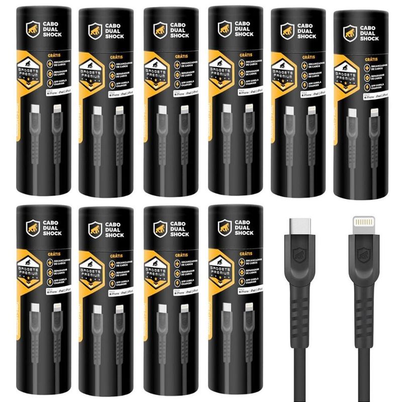 Cabo Dual Shock Lightning / Type C - Preto - 1,2m - no Atacado - Caixa Fechada 10 Unidades - Gshield REF: 676785_Sicredi
