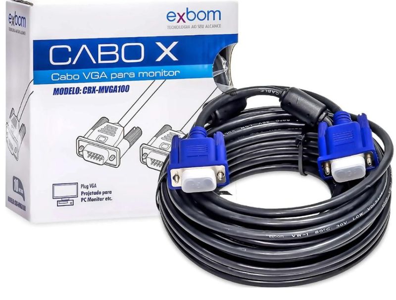 Eletrônicos e TecnologiaInformáticaAcessórios e PeriféricosCabo Para Monitor e Projetor VGA DB15 Com Filtro 5 Metros