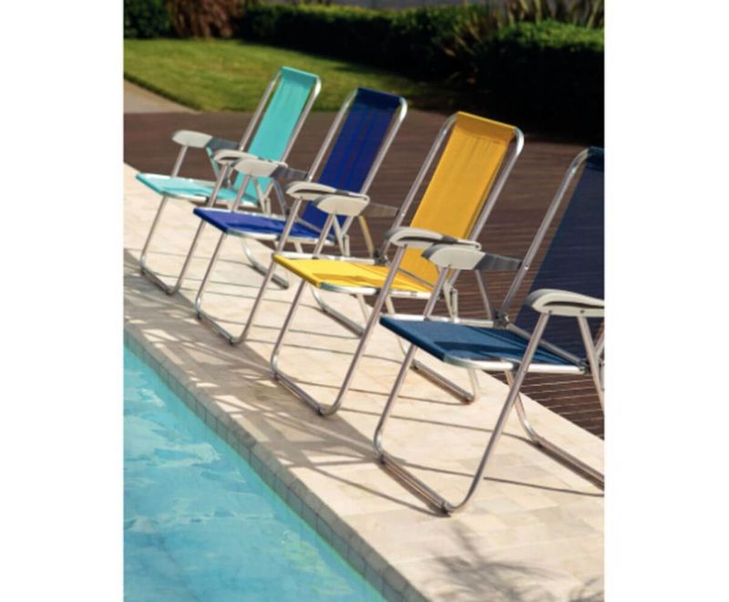 Cadeira de Praia Tramontina Creta Master em Alumínio com Assento Azul REF: 7908538103657