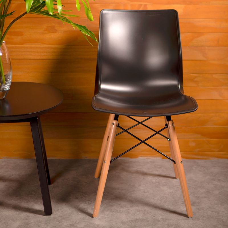 Cadeira Tramontina Maja em Polipropileno Preto Base Madeira REF: 7898683601255