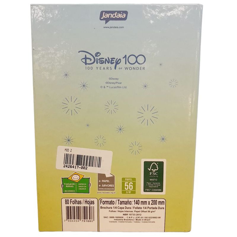 Eletrônicos e TecnologiaInformáticaMateriais de EscritórioCaderno 1/4 Brochura 80 Fls Disney 100 anos Capa2 - Jandaia