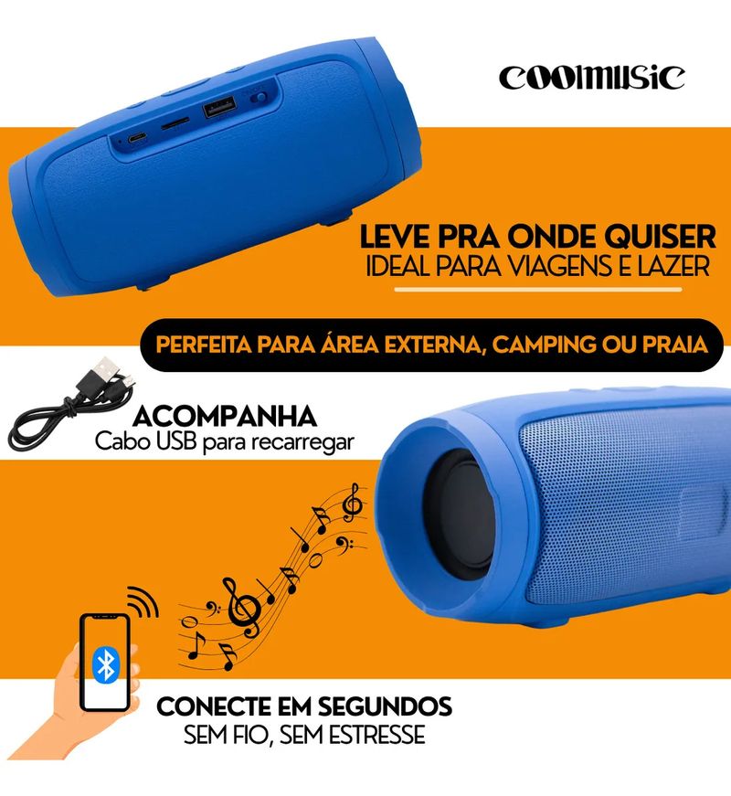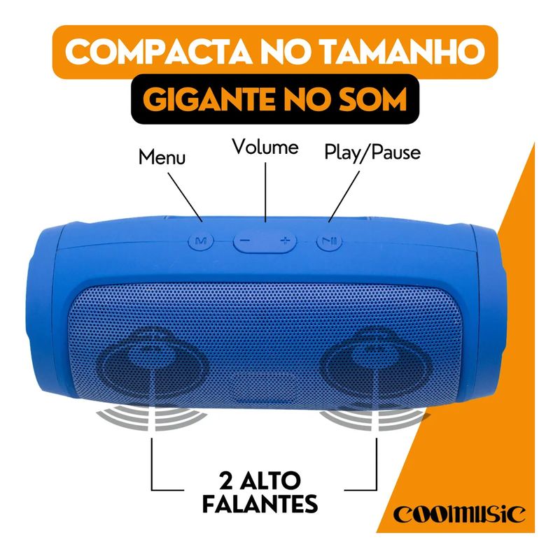 Caixa Caixinha De Som Bluetooth Pendrive Sd Fm Portátil Alto Falante Estéreo Coolmusic 10w - Azul REF: 924525_Sicredi