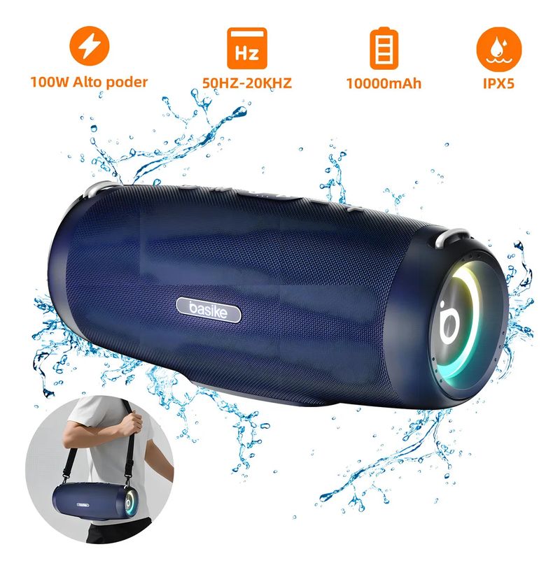 Caixa De Som Bluetooth 100w 10000mah Tws Ipx5 Boombox Portátil Som Bass Boost Estéreo - Azul REF: 924523_Sicredi