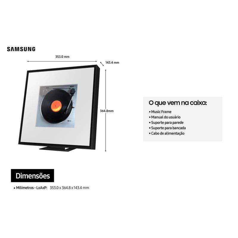 Caixa de Som Inteligente Music Frame Samsung HW-LS60D/ZD 120W Bluetooth Wi-Fi Dolby Atmos REF: 8806095587431