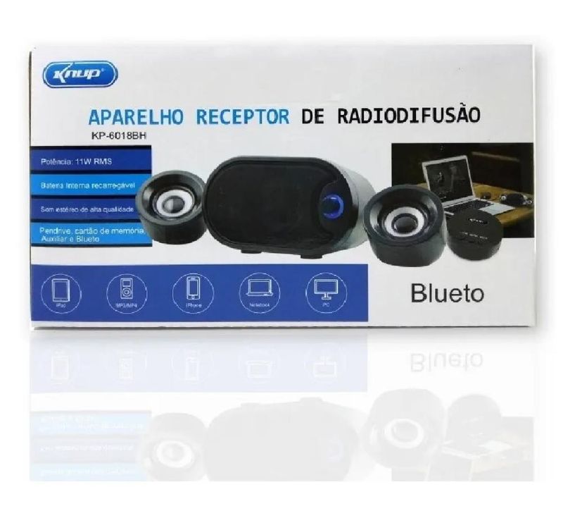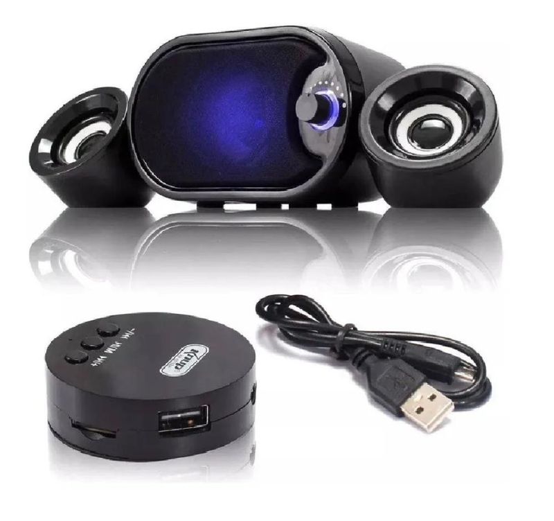 Eletrônicos e TecnologiaInformáticaAcessórios e PeriféricosCaixa de Som Subwoofer 2.1 USB/SD/Bluetooth 11W p/ PC KP-6018BH