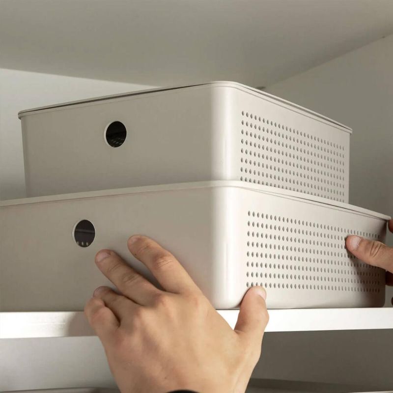 Caixa Organizadora com Tampa Ou Bege 27x22x9cm Cesto Organizador Flow 5,4L Closet Lavanderia REF: 7798139184755