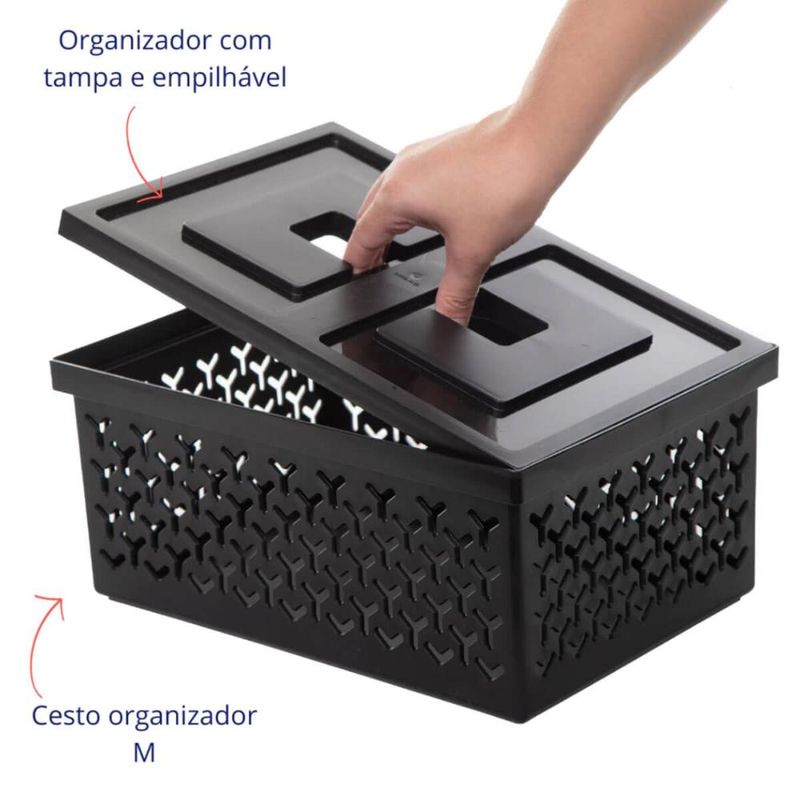 Casa e DecoraçãoDecoraçãoOrganizadoresCaixa Organizadora com Tampa Preta Cesto Médio Crippa Brinquedos Closet Lavanderia