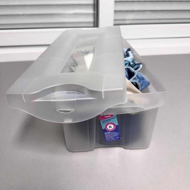 Casa e DecoraçãoDecoraçãoOrganizadoresCaixa Organizadora Plástica Estreita 8L com Tampa Ordene Transparente Multiuso Radical