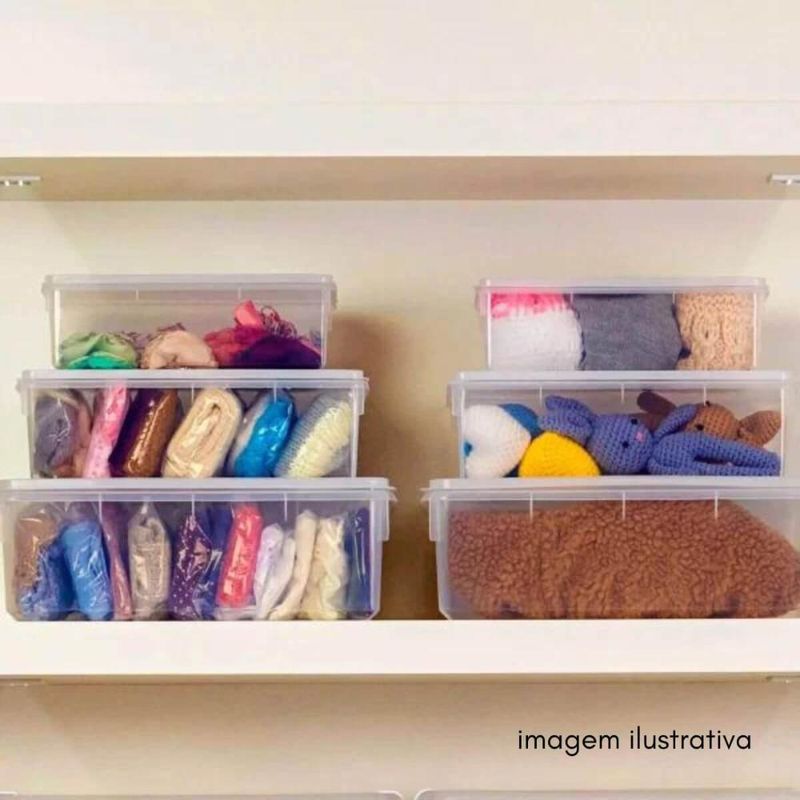 Casa e DecoraçãoDecoraçãoOrganizadoresCaixa Plástica com Tampa 6,5L Hermética Plasvale Branca Alimentos Organização Cozinha