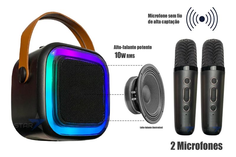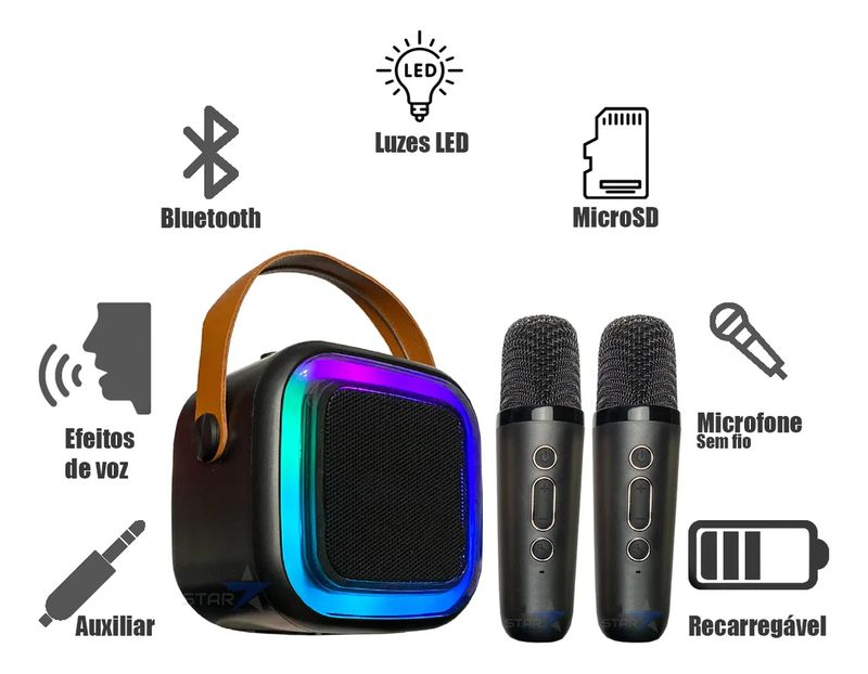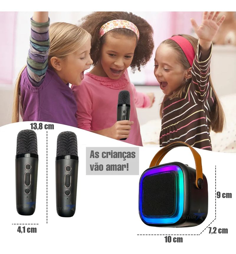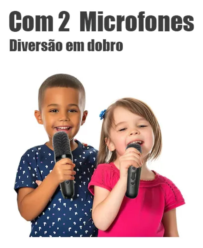 Caixinha Som Karaokê 2 Microfones Bluetooth Infantil Adulto - Azul REF: 924533_Sicredi