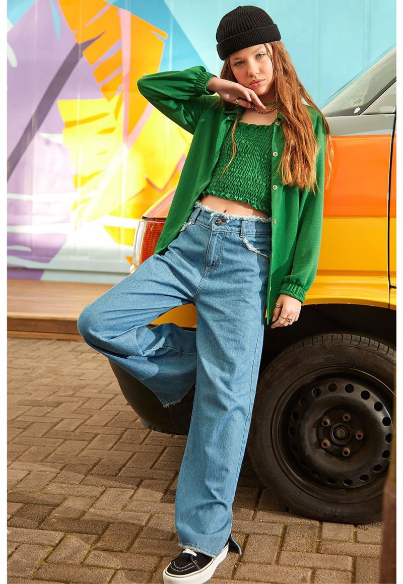 ModaInfantilCalças e BermudasCalça Jeans Juvenil Menina Inverno Estilosa Lilimoon