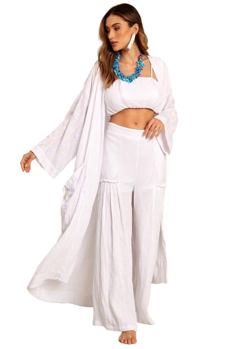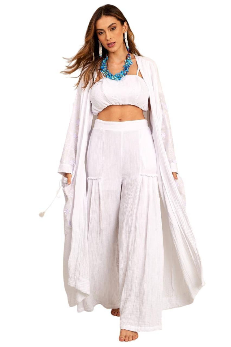 Calça Pantalona De Cintura Alta Branca Yacamim H10 REF: 742565_Sicredi