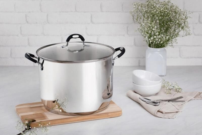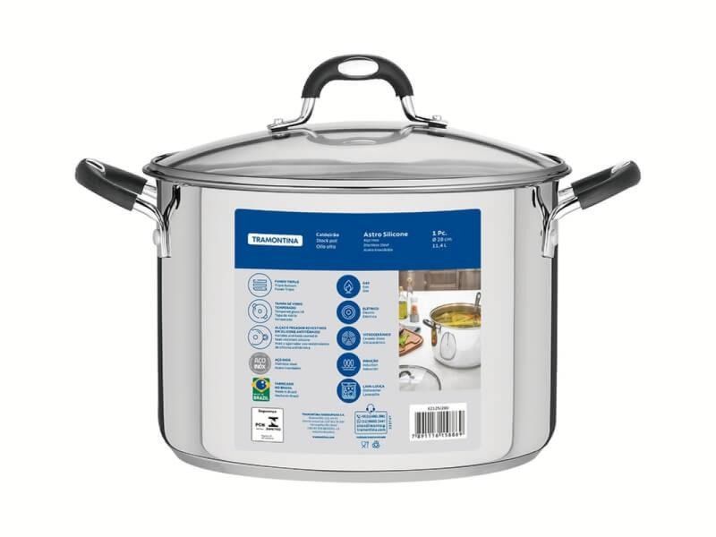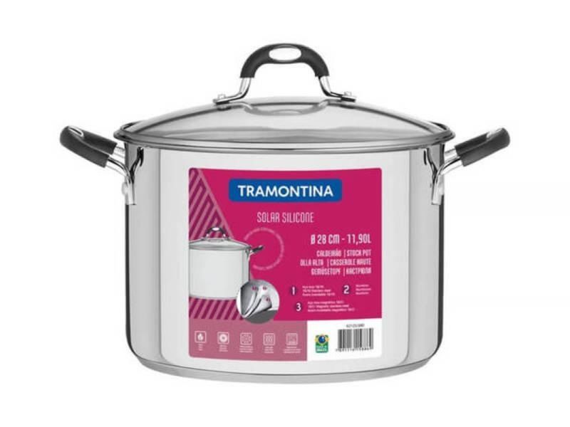 Casa e DecoraçãoUtilidades DomésticasJogo de PanelasCaldeirão Tramontina Astro Silicone 28cm em Aço Inox com Tampa de Vidro
