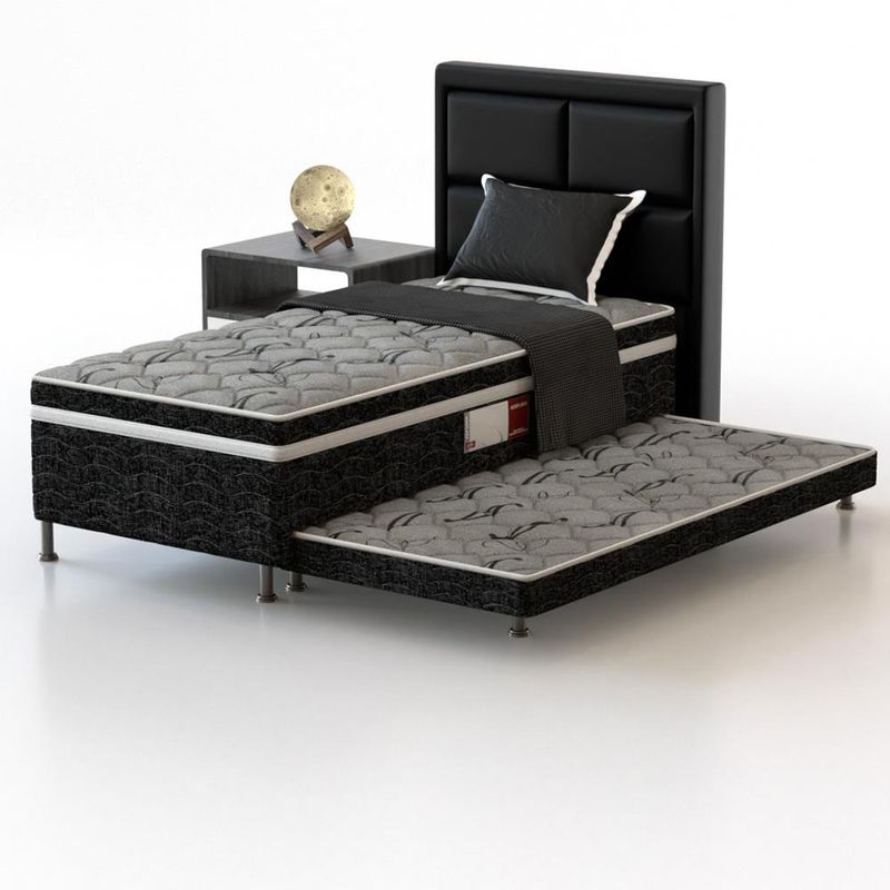 Cama Box Conjugada Solteiro Probel Platinum com Cama Auxiliar 43x88x188cm - Preta/Cinza REF: 67307_Sicredi