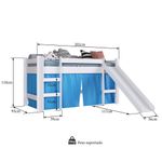 Cama Infantil com Degrau e Escorregador Branca, Cortina Azul REF: 7899671406616