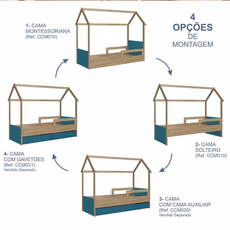 Casa e DecoraçãoMóveisCamaCama Infantil Montessoriana Aveiro com Azul