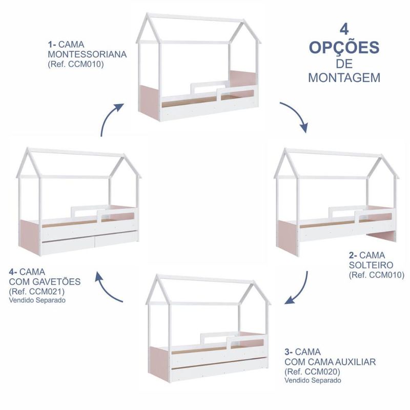 Cama Infantil Montessoriana com Cama Auxiliar Branco e Rosa REF: 7899671469482