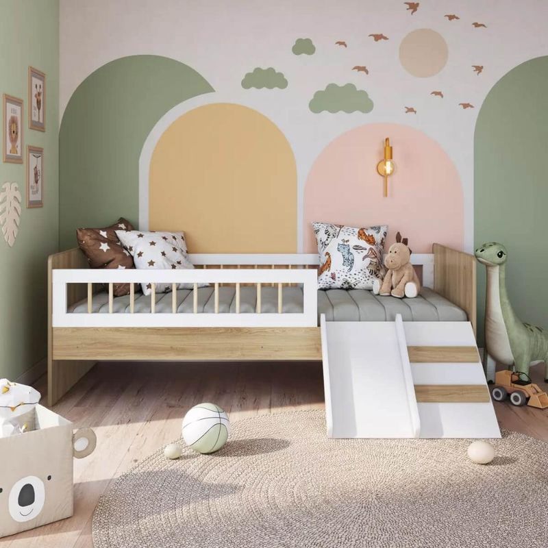 Casa e DecoraçãoMóveisCamaCama Montessoriana de Solteiro com Escada e Escorrega Linha Affetto Aveiro e Branco