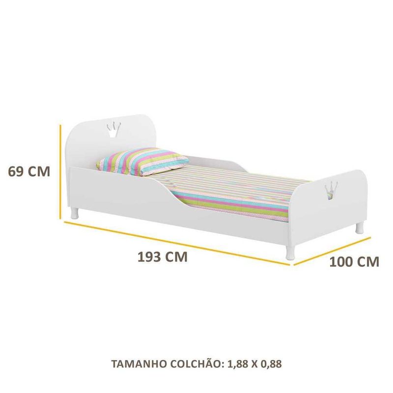 Casa e DecoraçãoMóveisCamaCama Solteiro com Colchão Incluso 88 x 188 cm 100% MDF Realeza Multimóveis Branco