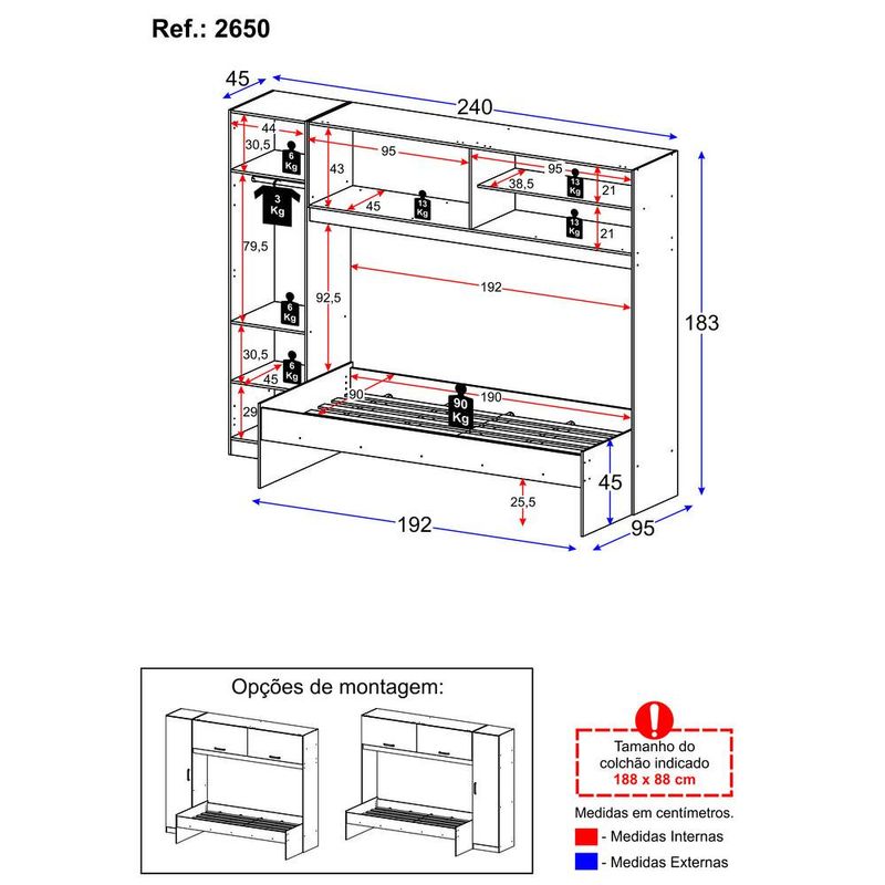 Casa e DecoraçãoMóveisCamaCama Solteiro com Guarda-Roupas/Roupeiro para colchão 88 x 188 cm Multimóveis Branco