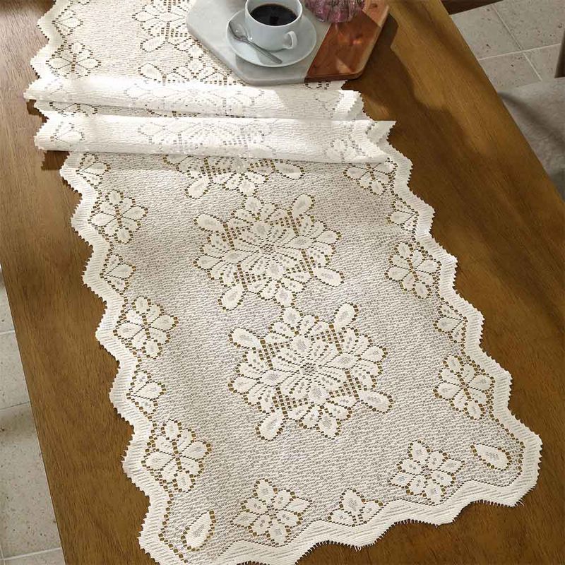 Caminho de Mesa Retangular Clássico Arabesco 50x150cm Marfim REF: 508305_Sicredi