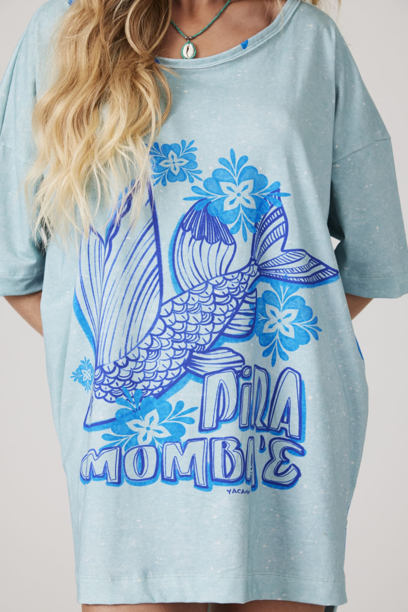 ModaFemininoBlusas e CamisetasCamiseta Básica Azul Coleção Pira Omomba''e Yacamim Q6