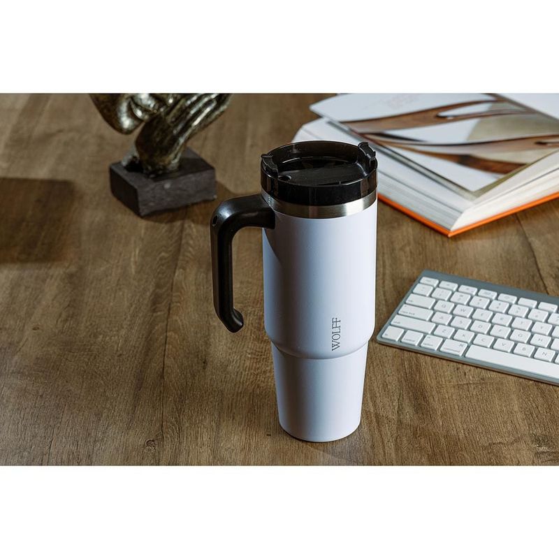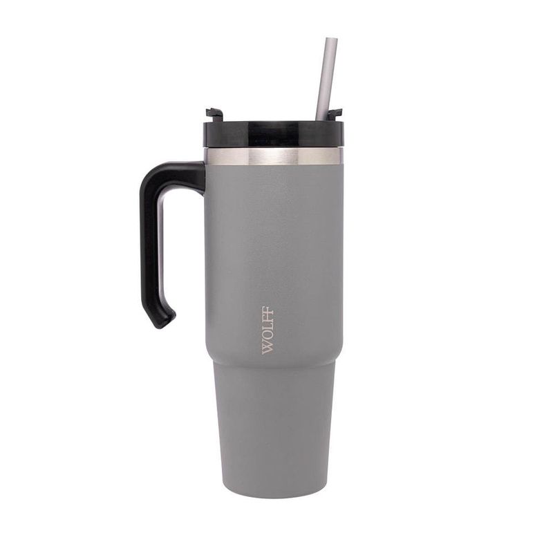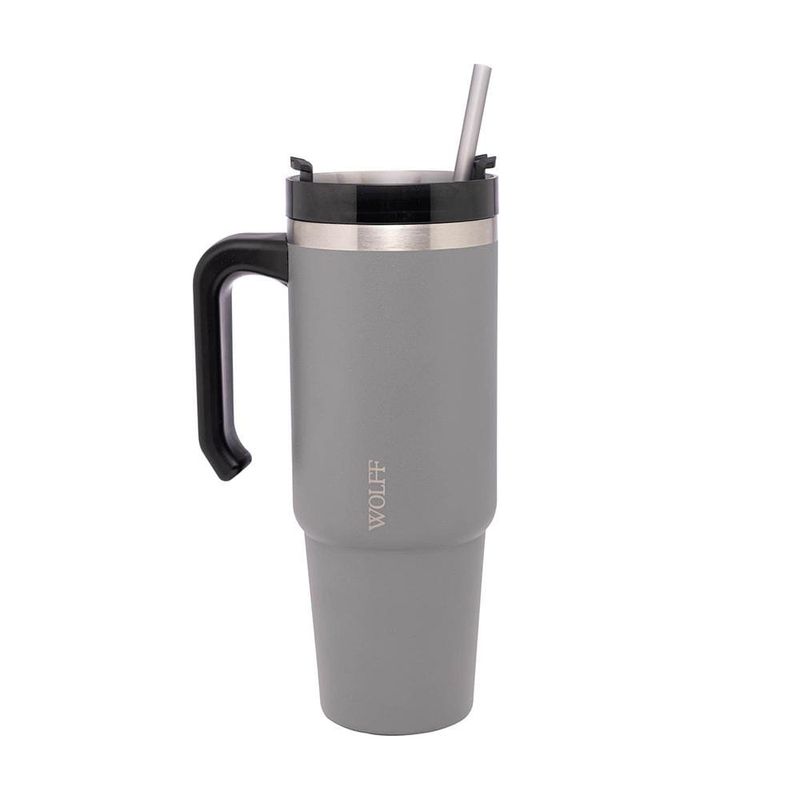 Caneca Térmica Wolff SlimTerm 890ml com Canudo, Parede Dupla e Base Ergonômica Cinza REF: 7895730295726
