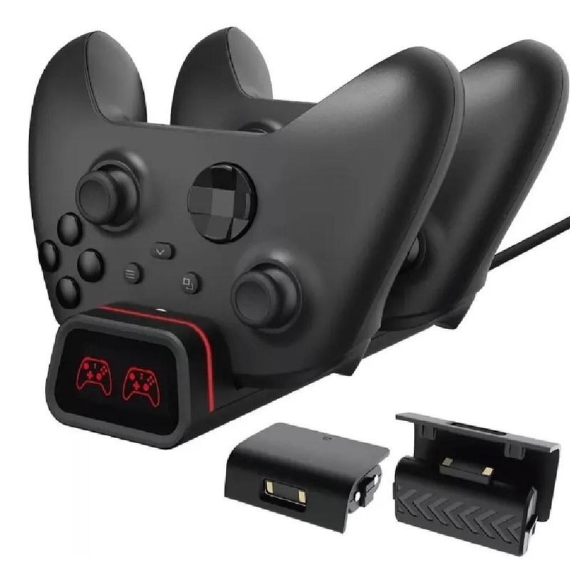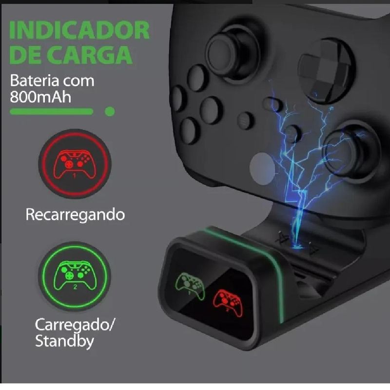 Eletrônicos e TecnologiaGamesAcessóriosCarregador Para Controle Xbox One e Séries S e X + 2 Baterias 800mah + 4 Tampas